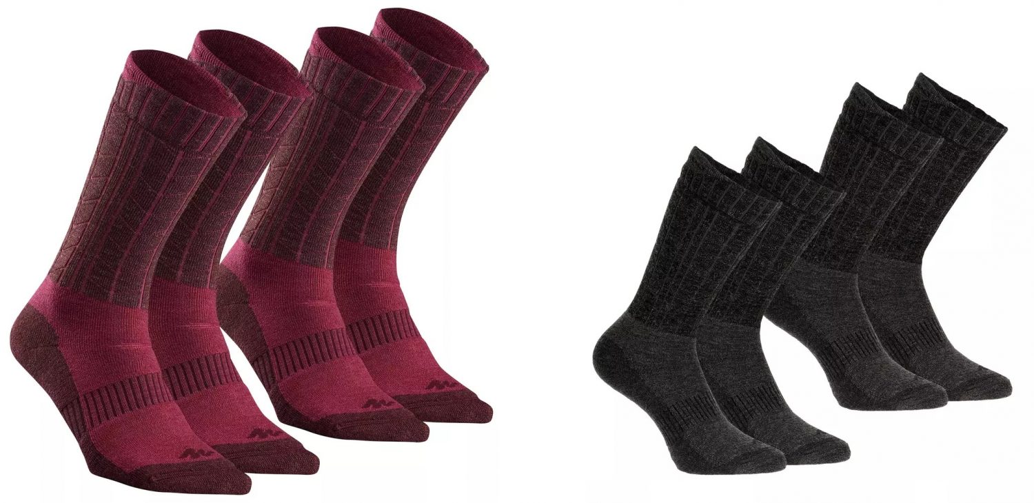 Si pretendemos salir a la montaña en invierno y que el paseo sea agradable es muy importante estar a resguardo del frío. Y los pies son fundamentales para ello. Por eso es importante contar con unos buenos calcetines, que también ayudarán a prevenir la aparición de ampollas. Estos calcetines térmicos Quechua SH500 hechos en un 50% de lana merina son ideales. Decathlon ofrece 2 pares a 10,99 euros. Hay varios colores para elegir.