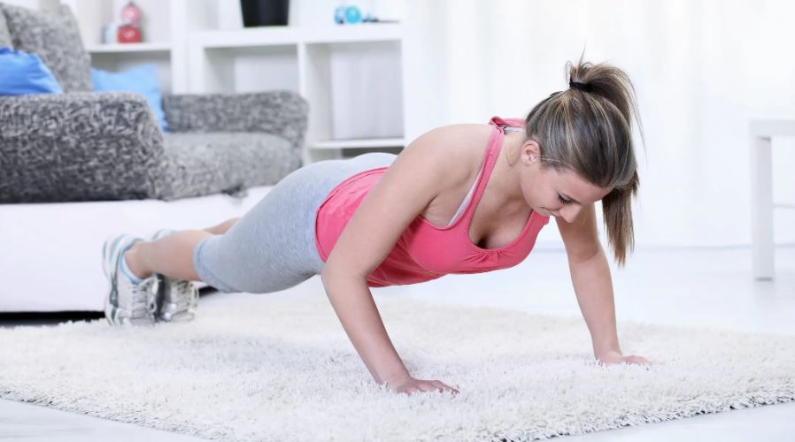 Simplemente acuéstate boca abajo apoyando las palmas de las manos sobre el suelo, estira tus brazos de manera tal que queden a la anchura de tus hombros y comienza a subir y bajar tu cuerpo de forma erguida sin levantar el glúteo y siempre con la cabeza mirando al frente. Para empezar haz 3 series de 10 flexiones. Si te resulta muy difícil deja las rodillas apoyadas en el suelo.