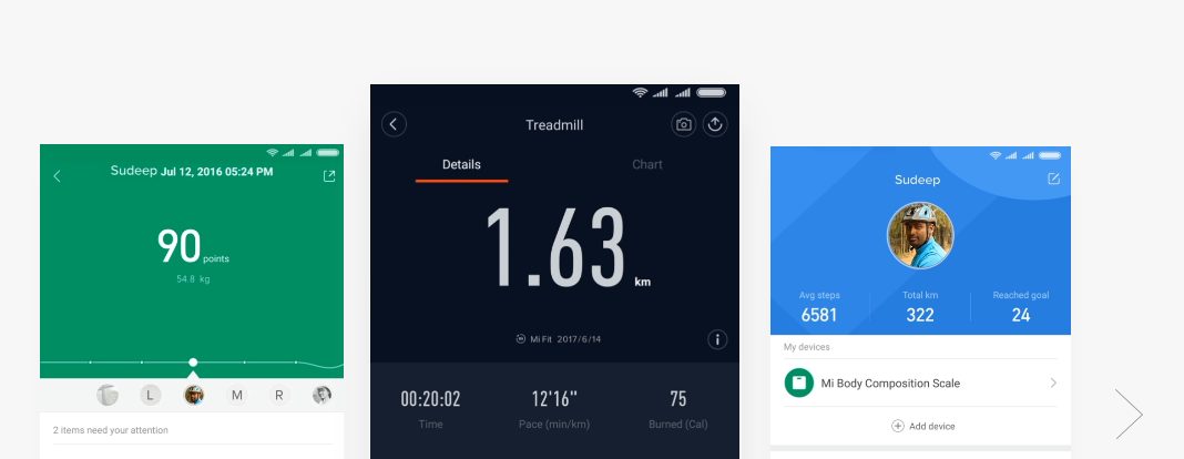 La aplicación Mi Fit hace un seguimiento de diferentes características de tu composición corporal como el peso, el porcentaje de grasa, el porcentaje de agua corporal y mucho más para ofrecerte un completo programa de entrenamiento. Te dirá si necesitas hacer más ejercicio o si te estás pasando y comienza a ser alarmante tu pérdida de kilos. Nuestra recomendación es la alimentación sana.