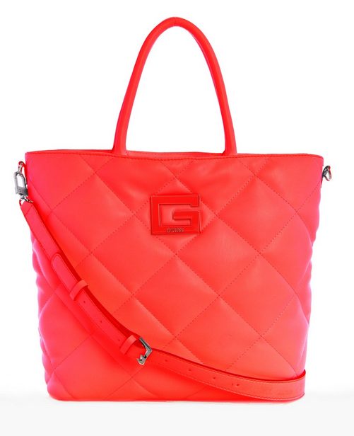 Para esos días ajetreados llenos de recados y tareas pendientes, lo ideal es salir de casa con un bolso tipo tote, práctico, amplio y supercómodo para llevar un montón de objetos personales. Guess nos propone este modelo acolchado y de color rojo, perfecto para el día a día y a la vez sofisticado y con mucha clase.