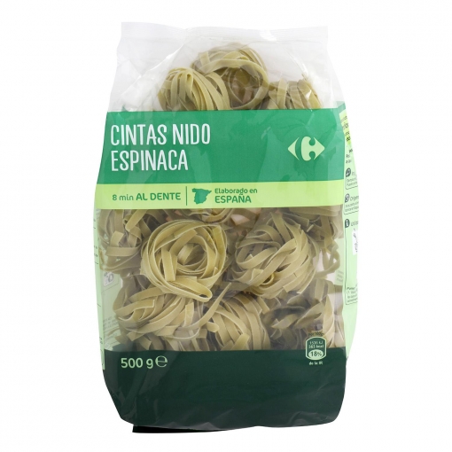 La pasta es uno de esos alimentos que podemos almacenar en casa sin miedo, y que se convierten en un comodín rápido, sencillo y siempre delicioso. Existen tantas variedades de pasta como recetas diferentes y aunque todas sean básicamente sémola de trigo, no son para nada lo mismo. Los nidos de espinacas por ejemplo son una deliciosa alternativa para un plato de pasta distinto, ideal para tomar como guarnición o como plato único, acompañado de verduras salteadas o de los ingredientes preferidos. El paquete de 500 gramos ahora en Carrefour cuesta solo 0,99 €.