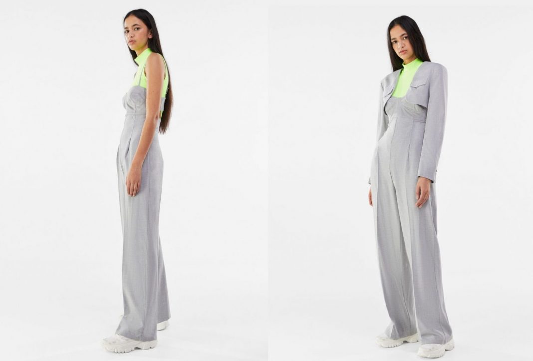 Las tendencias de la moda apuntan cada vez más a diseñar ropa sustentable. El respeto hacia el medio ambiente es una máxima a la cuál las grandes cadenas se están adaptando cada vez más. Este elegante mono largo gris de Bershka también se engloba dentro del universo de prendas ‘Care for fiber’. Es decir, poliéster obtenido a partir del reciclaje de plástico PET. La composición del forro es de poliéster en un 63%, 33% viscoso y 4% elastano. Este precioso modelo de la colección Join Life cuesta 29,99 euros.