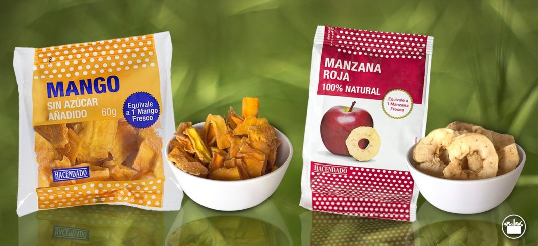 Parece que no hay excusas para llevar una vida saludable, pues vamos con otro snack de Mercadona cuyo propósito es evitar esas otras alternativas llenas de grasa y azúcares tan dañinos para nuestra salud que consumimos cuando no tenemos nada mejor a mano. Está claro, que el mejor snack es la fruta o la verdura fresca. Pero como no siempre podemos tener una pieza al alcance, hay en el mercado una oferta de fruta deshidratada para estas ocasiones. Mercadona tiene su versión con manzana y mango deshidratados y cuestan menos de 2 euros, así que en ausencia de fruta fresca, siempre podemos recurrir a esta opción.
