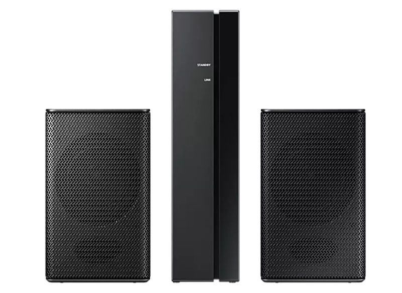 Este kit se encuentra compuesto por dos altavoces traseros inalámbricos y un módulo inalámbrico que es perfecto para tu barra de sonido. Es compatible con las barras de sonido Samsung HW-R550, HW-R450, HW-Q60R, HW-Q70R.