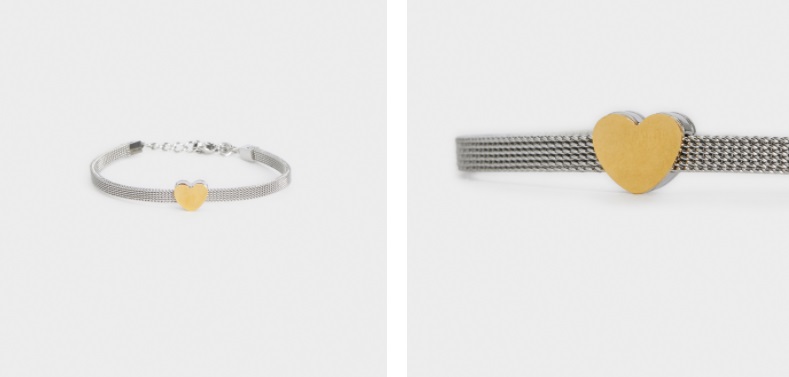 La cadena de acero plateada mientras que el corazón en dorado, será la estrella del accesorio. Además cuenta con un buen cierre de eslabones finos, por lo que no debes preocuparte por si la pierdes. Solo céntrate en lucirla y en combinarla con tus looks. Ahora que llega el buen tiempo podrá acompañar esas blusas estampadas, de media manga o de manga corta.