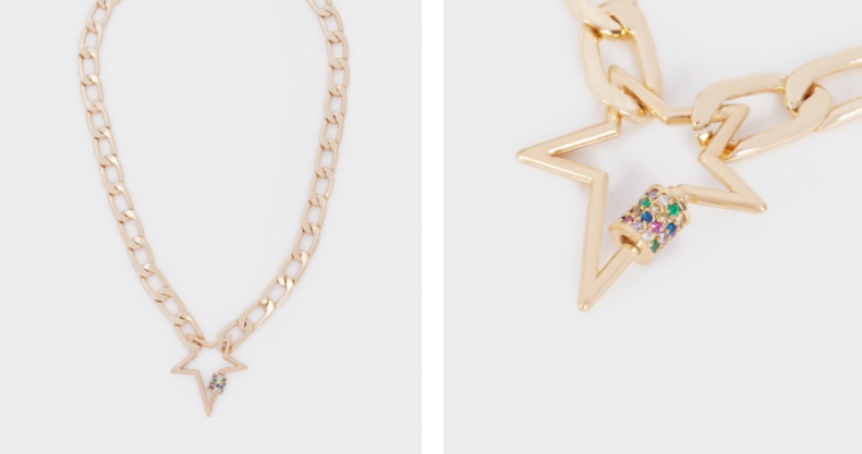 Por un lado tenemos esos eslabones planos y dorados que aportarán el brillo que necesitamos en cada momento. Mientras que por otro, se completa con esa estrella que a su vez, nos deleita con un acabado de pedrería a todo color. ¡Nos encanta!