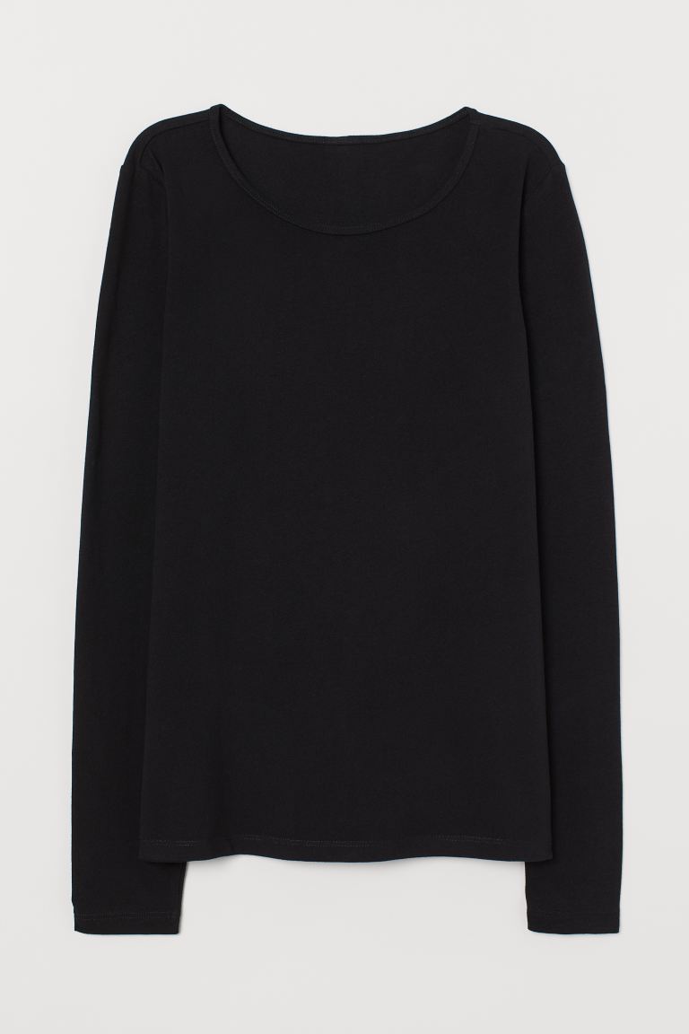 Ir a la oficina no tiene que estar reñido con ir incómodo. Y esto lo puedes hacer bien con esta camiseta de manga larga en punto suave de algodón con cuello redondo. Tiene escote de cuello redondo y una composición de algodón al 95% y de 5% de elastano. Recuerda que lo tienes que lavar a máquina a 30 grados.