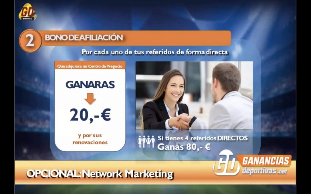 Tras esto, Rubio procede a explicar el funcionamiento de la empresa y cómo afiliarse. Al final, se activaron los altavoces de varios invitados que explicaron al resto lo bien que les ha ido después de ingresar en Ganancias Deportivas. Historias personales de éxito con las que intentan convencer a los asistentes para unirse al negocio.