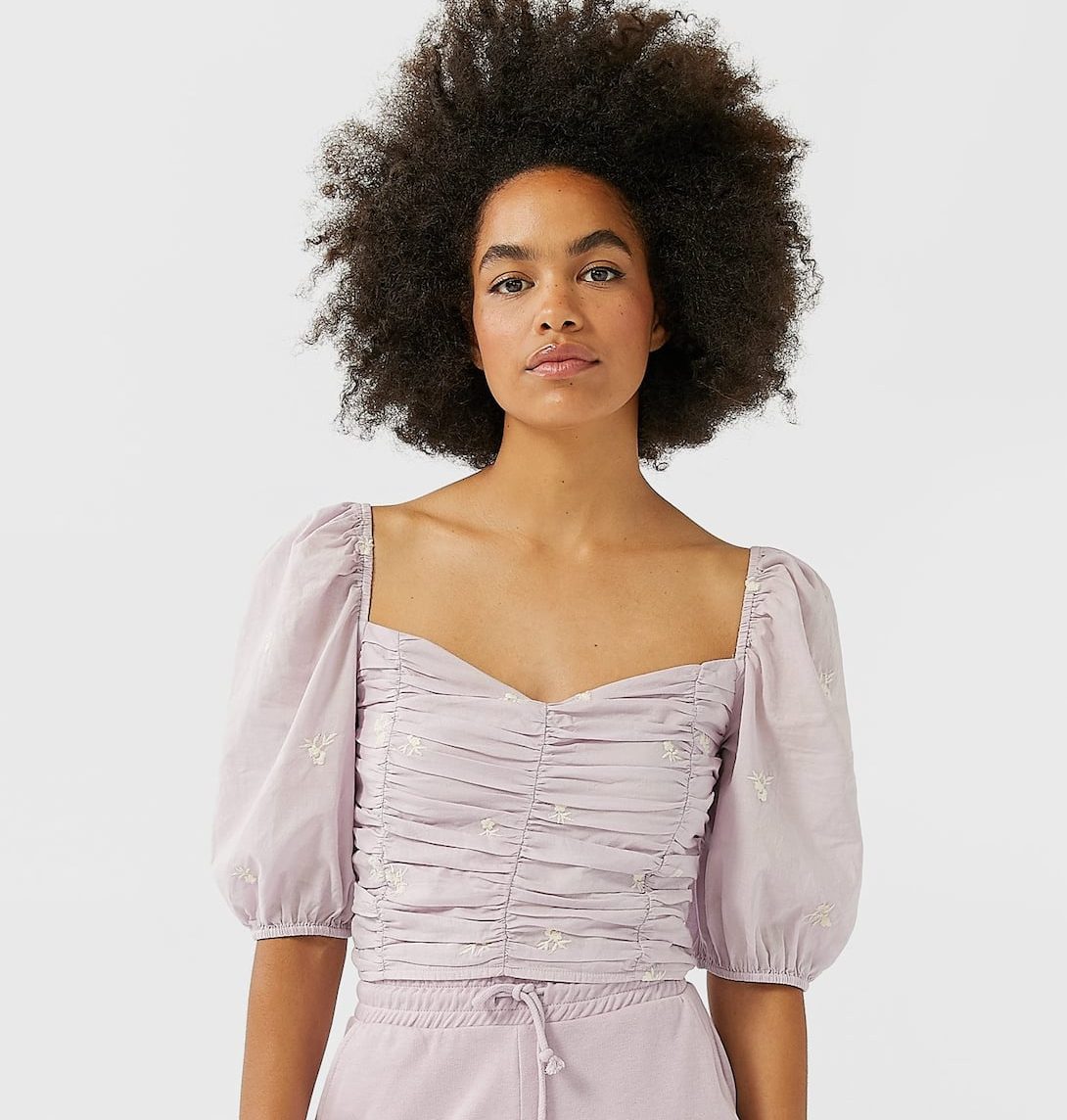 El estilo de «Los Bridgerton» parece que ha llegado para quedarse esta primavera. Los tops fruncidos, que nos recuerdan a un corsé, y con tonos pasteles y relajados, serán ideales para conseguirlo.
