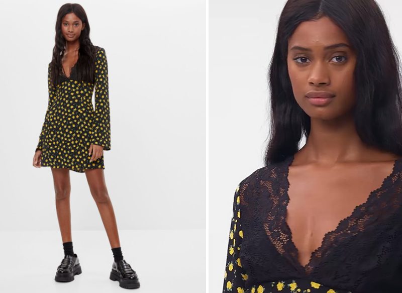 Con la llegada de la primavera los vestidos florales son la opción más habitual para utilizar en todo tipo de eventos y momentos. Uno de los modelos que puedes encontrar en Bershka es este vestido flores encaje, el cual se encuentra a la venta por 3,99 euros. Esto supone una rebaja de 26 euros sobre el precio de venta habitual.