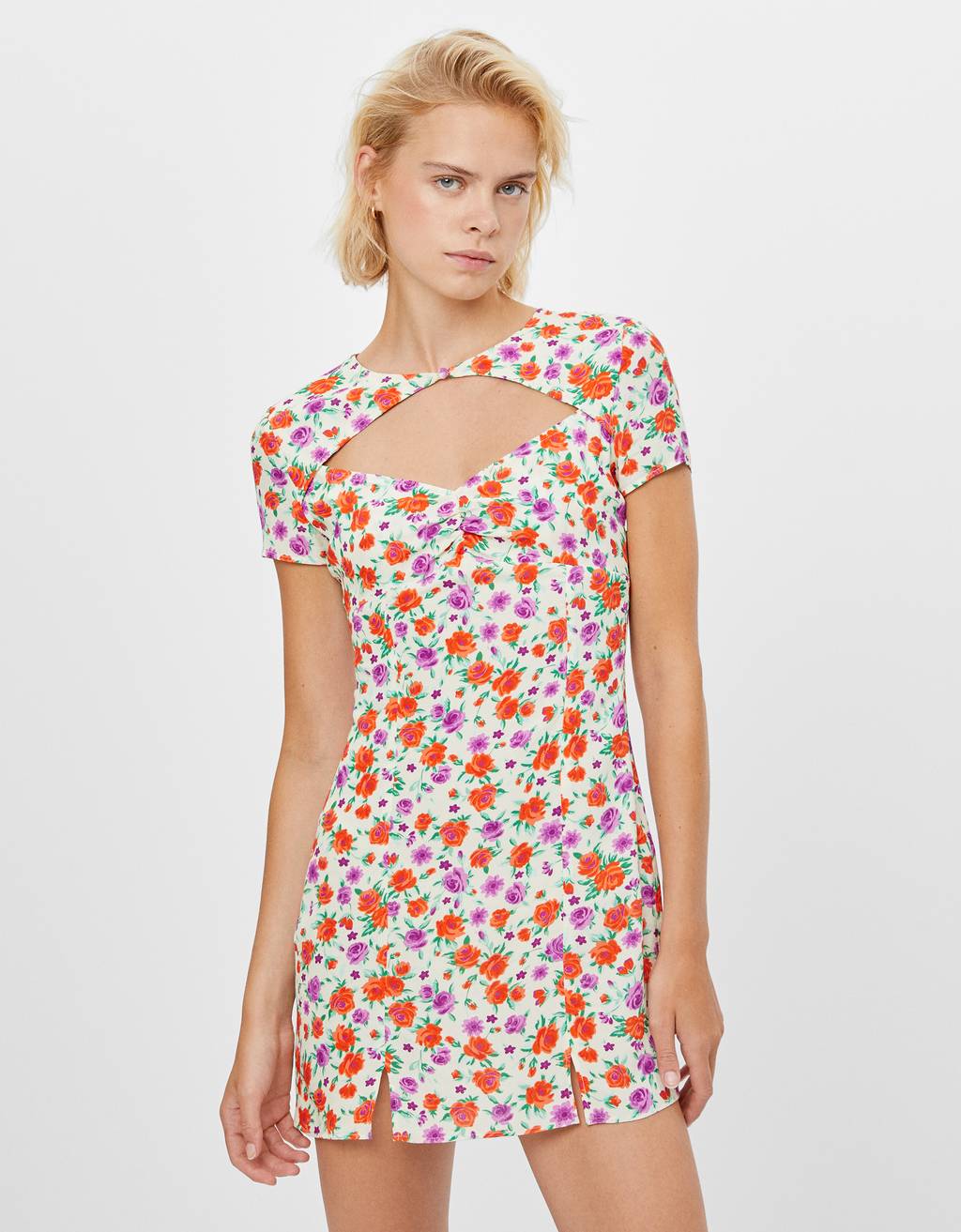 2VESTIDO CON ESTAMPADO DE FLORES Y ABERTURA
