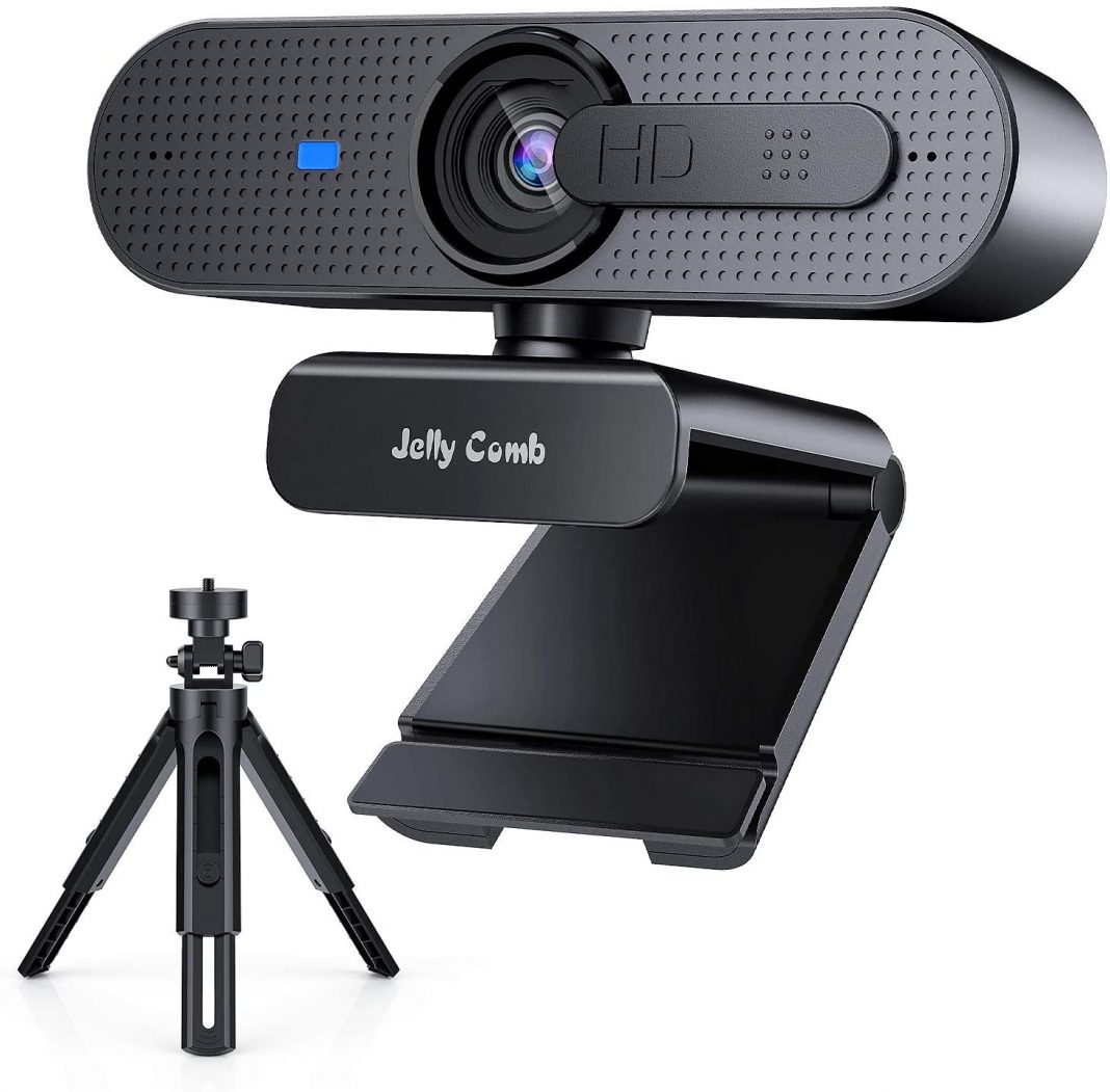 Toma nota de esta cámara de PC con micrófono con webcam 1080P Full HD, enfoque automático con Micrófono Estéreo, Jelly Comb Cámara Web USB con trípode y Cubierta de privacidad para PC, computadora, Zoom, XSplit, Skype y conferencia. Muchas de las características que buscas en una cámara.