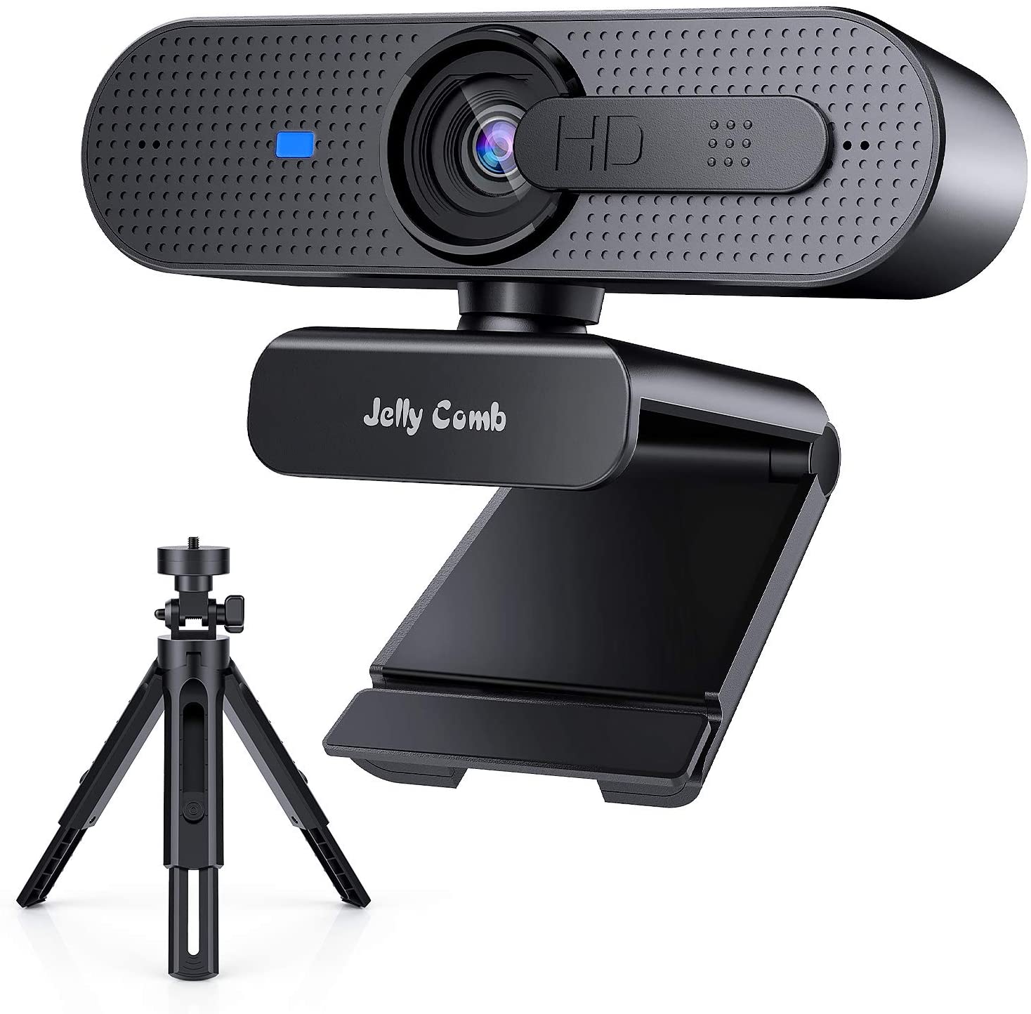 Toma nota de esta cámara de PC con micrófono con webcam 1080P Full HD, enfoque automático con Micrófono Estéreo, Jelly Comb Cámara Web USB con trípode y Cubierta de privacidad para PC, computadora, Zoom, XSplit, Skype y conferencia. Muchas de las características que buscas en una cámara.