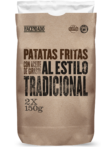 Aunque existen muchas variedades de patatas fritas, lo tradicional nunca decepciona, por eso son unas de las más vendidas. Las artesanales se presenta en el típico envase de papel, dentro del cual hay dos bolsas independientes de patatas de 150 gramos cada una, para garantizar su frescura y su textura.