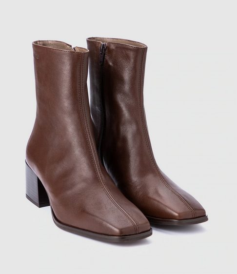 Estos de El Corte Inglés de la marca Wonders tiene una caña de 15 cm de altura, por lo que son más bien altos. El tacón es tipo bloque de 5 cm, muy cómodo, la forma de la puntera es cuadrada y tiene un cierre lateral con cremallera. Están fabricados en piel marrón y pensados para durar muchos años. El precio de este calzado es de 109 €.