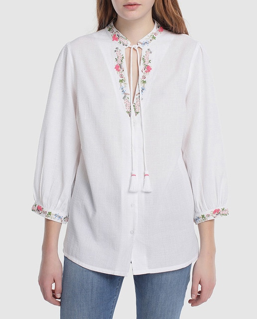 4BLUSA BLANCA CON DETALLES DE FLORES, LA VERSIÓN HIPPY DE EL CORTE INGLÉS
