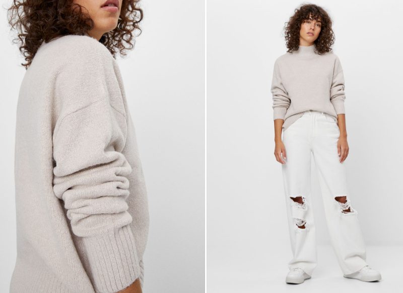 Si buscas un jersey que puedas utilizar en cualquier tipo de situación o evento, tanto con estilo formal como si buscas algo más casual, este jersey cuello alto de Bershka no puede faltar en tu armario. Disponible en acabado crudo, piedra y morado, podrás encontrar la opción que mejor se adapte a tus necesidades.