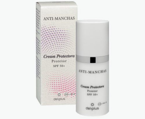 También por tan sólo 6 euros tienes esta crema facial protectora Anti-manchas FPS 50+ válida para todo tipo de pieles. Tiene otra versión pensada para la noche y así aplicar una de cada para cubrir las 24 horas. En el envase vienen indicado: el blanco como Protetor y el violeta como Aclarante, ambas de Deliplus.
