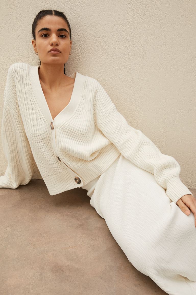 El canalé es una de las elaboraciones que podemos hacer en punto más llamativas. Por eso, nos ha gustado tanto este sencillo cárdigan, que encontramos ya en las tiendas y web de H&M, con un corte ligeramente oversize muy favorecedor.