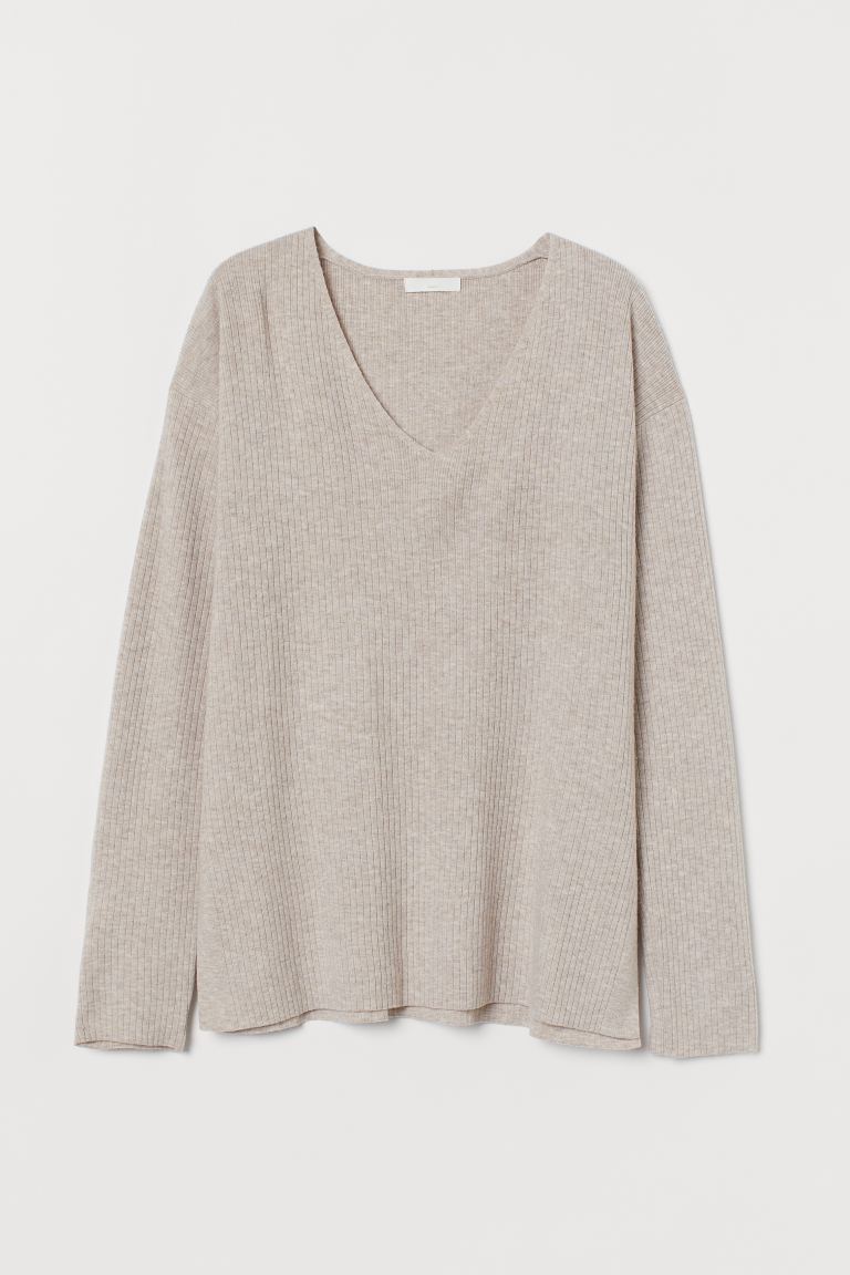 Esto es lo que sucede, por ejemplo, con este jersey fino, en color piedra, que podemos encontrar en H&M. Sus tonos claros aportarán calidez al rostro y su escote en pico resultará de lo más favorecedor, incluso si no tenemos mucho pecho.