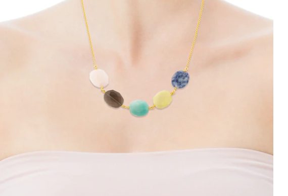 Los amantes de los collares saben que un collar especial puede animar un día gris e iluminar aún más un día soleado. Por este motivo querrás lucirlo siempre. Y si es a este precio, pues mucho mejor. El collar Tous Terra de plata vermeil con aventurina azul, gaspeita, amazonita, cuarzo ahumado y ópalo rosa solo vale 103 euros.