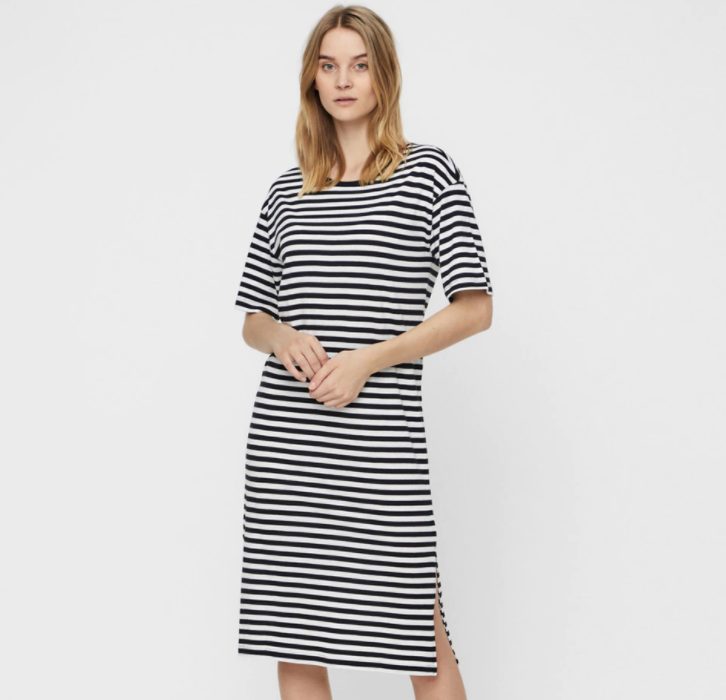 No nos podemos creer que este vestido midi de manga corta de la marca Noisy May y de venta en El Corte Inglés cueste tan solo 16,99 euros. Es un clásico de primavera- verano que se lleva siempre, absolutamente siempre. Un vestido de algodón con rayas marineras es lo único que necesitas para empezar a soñar con el mar, la arena y la normalidad… La de antes, claro.