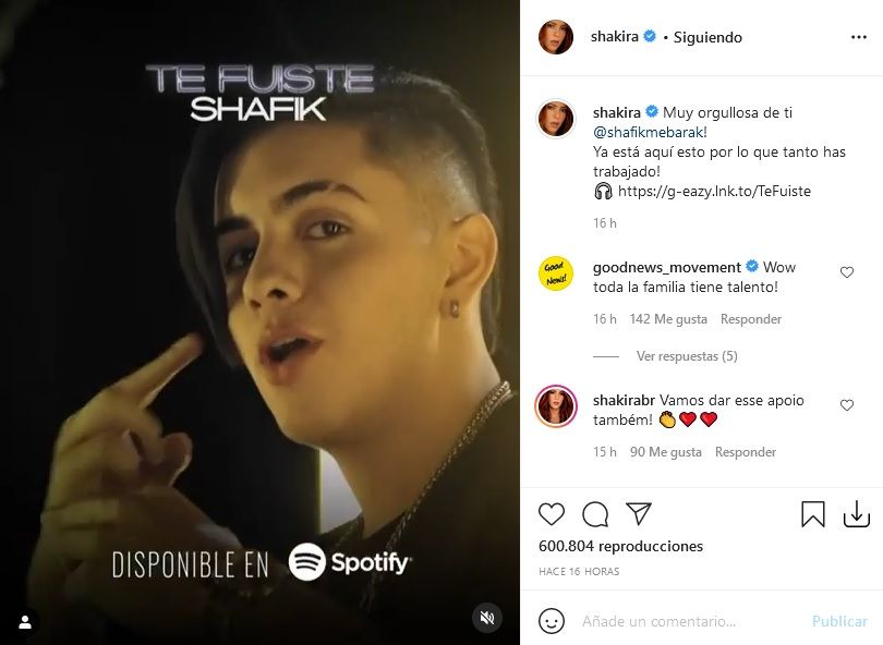 Hacerse un hueco en el competitivo ambiente musical no es una tarea sencilla. Artistas talentosos sobran, pero a veces necesitan contar con un estímulo externo que ayude a impulsar sus respectivas carreras. Y vaya si lo ha tenido Shafik Mebarak. A los pocos días de publicar ‘Te fuiste’, su primer single, Shakira compartió su video clip en su cuenta de Instagram. ¿Cuántos seguidores tiene? La módica suma de 70 millones. Nada mal como promoción. «Muy orgullosa de ti Shafik. ¡Ya está aquí esto por lo que tanto has trabajado!», posteó la popular cantante colombiana.