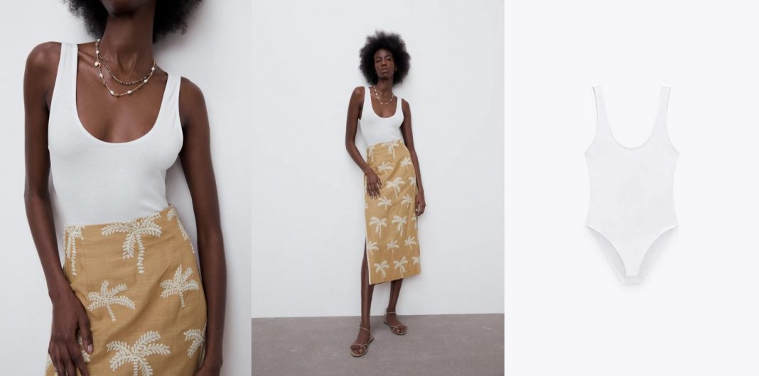 Entre las prendas básicas de mayor importancia también podemos encontrar este bonito body de escote redondo y tirantes anchos. Su cierre en bajo es con botones a presión. Luce estupendo con una falda, vaqueros o cualquier tipo de pantalón. También está desarrollado de forma sostenible y cuesta en Zara solo 7,95 euros. Está disponible en blanco, rosa y negro.