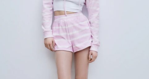 De color rosa bebé y con rayas blancas, su tejido de toalla los convierte en la prenda ideal para cualquier cosa. Los podemos usar para hacer deporte, salir, quedarnos en casa y, si sabemos combinarlos, también darles un aire un poco más formal.