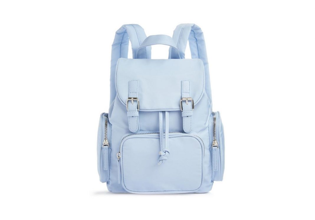 Primark lo está petando con sus nuevos diseños. Mira esta preciosa mochila de nailon azul clara con cuatro bolsillos y hebillas pequeñas. Extremadamente bonita y funcional. Si eres más de mochilas que de bolsos no puedes dejar pasar esta ocasión. Por tan solo 12 euros, podrás disponer de este fantástico accesorio. Para llevar a cualquier sitio. Por el mismo precio está disponible también color camel.