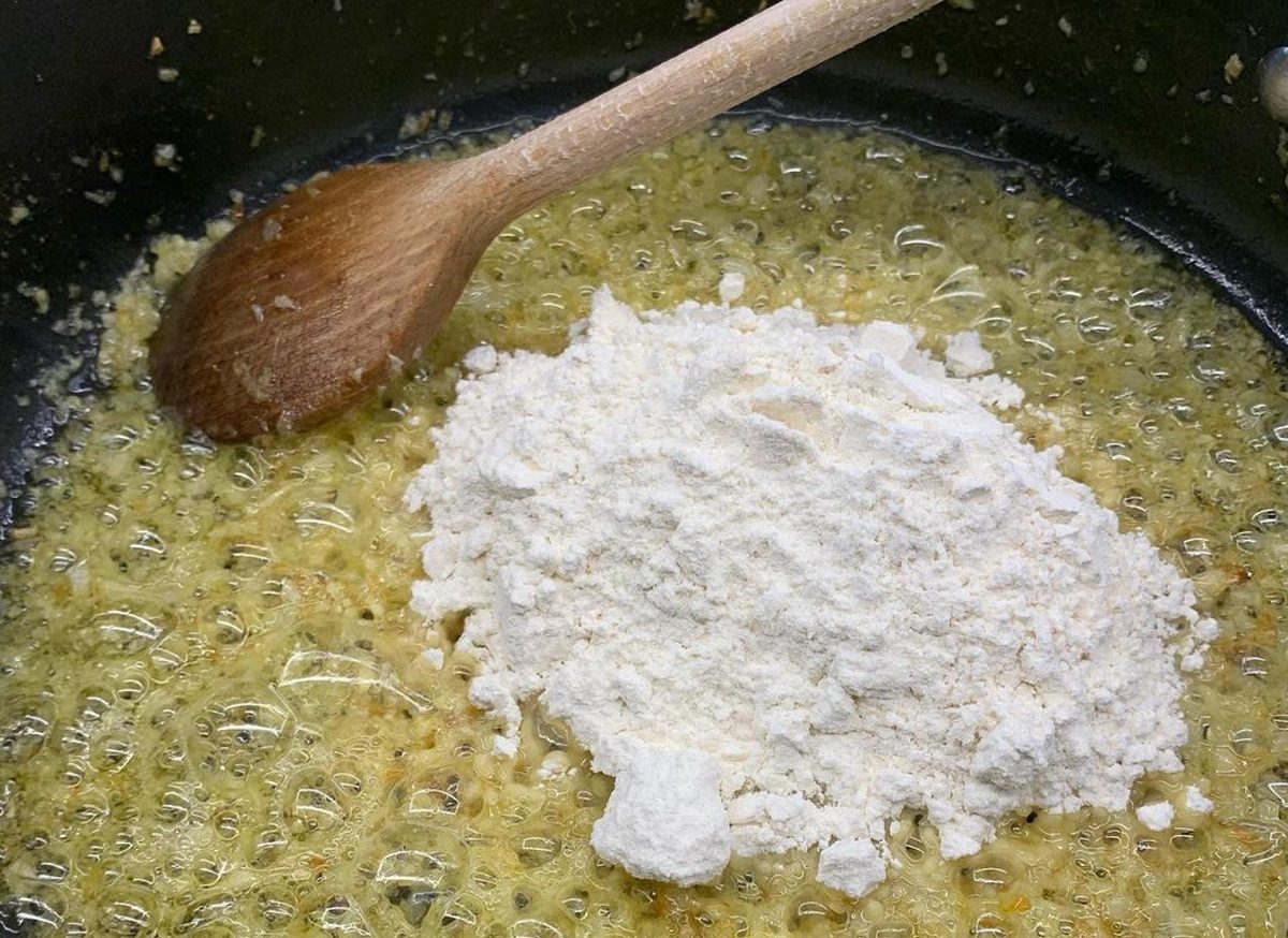 Teniendo en cuenta lo anterior, el primer paso consiste en derretir la mantequilla en una cacerola de fondo grueso. Luego se añade la harina haciendo uso de una cuchara sopera y se debe cocinar todo revolviendo de una manera constante, hasta lograr que la pasta se cocine y empiece a burbujear. No se debe dejar que se llegue a dorar.