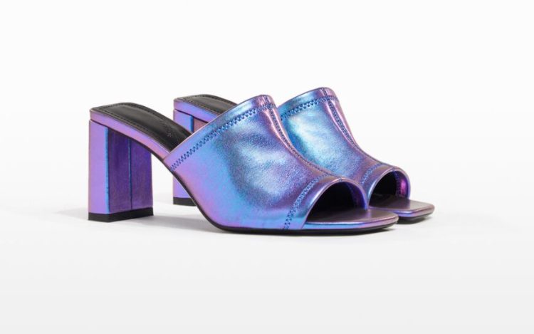 Se trata de un calzado cómodo, con forma de zueco, abierto tanto por la parte de delante como por la de detrás y con un tacón cuadrado muy favorecedor. Además, llama la atención sus colores irisados y metalizados que van desde el azul hasta el malva más primaveral.