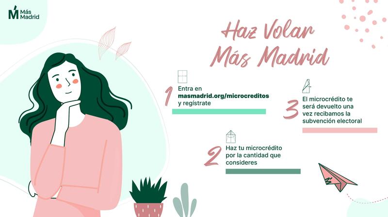 Para ello, hay que entrar en masmadrid.org/micorcreditos y registrarse. Después, la persona incluye la cantidad de crédito que considere y, por último, dicho crédito será devuelto una vez reciba este partido la subvención electoral.