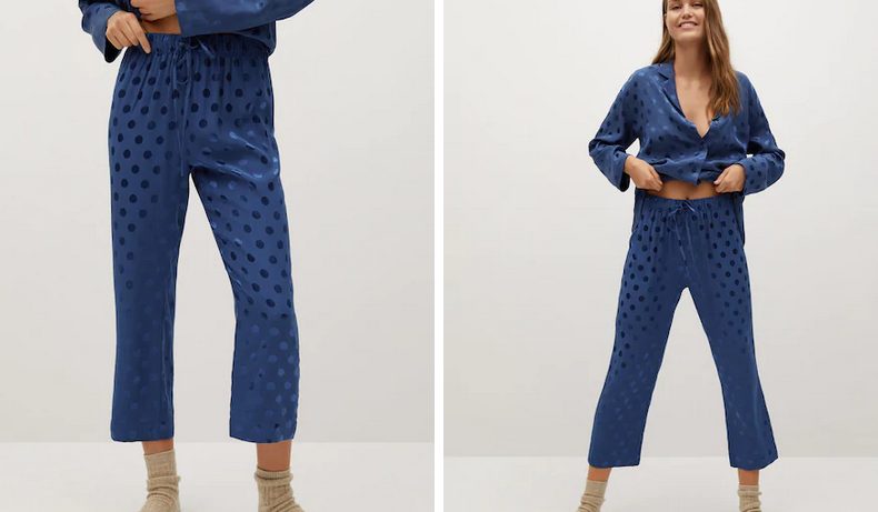 Exclusivo Online te puedes llevar este pantalón pijama satinado con lunares, que es ideal para estar en casa durante estos meses de primavera. Acabado satinado con diseño recto y diseño de lunares, viene con goma elástica. Y lo hace por solo 29.99 euros.