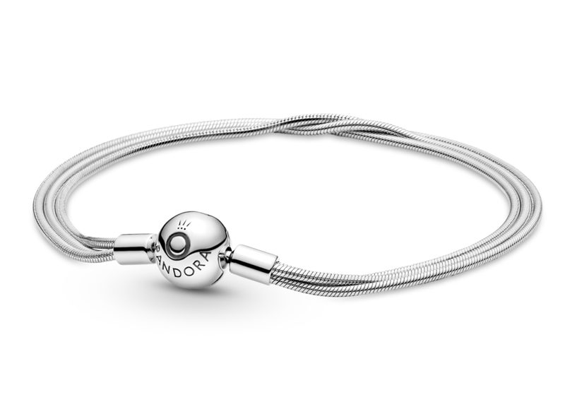 De sus nuevos productos tenemos que mencionar esta pulsera Pandora Moments en plata de ley multi cadena de serpiente; con la cual te puedes hacer por un precio de 69 euros. Está fabricada en plata de primera ley y posee un cierre de forma circular.