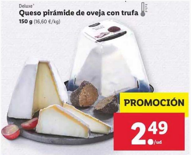 Dentro de la gama de los productos más gourmet de Lidl, hay que destacar su queso de oveja con trufa, probablemente uno de los más valorados del catálogo. No solo por los clientes, también por expertos catadores, ya que es un queso que obtuvo la medalla de plata en los World Cheese Awards de 2019. Este evento internacional reúne cada año hasta 4.000 tipos de quesos de más 40 países, así se trata de un reconocimiento importante. El producto se vende en cuñas de unos 150 gramos a 2,49 €, y se trata de un bocado realmente único y especial.