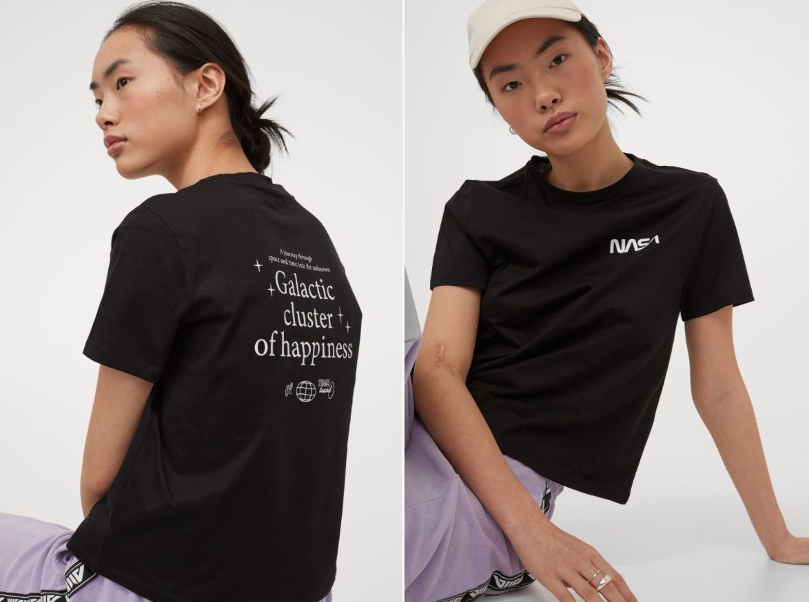 Huimos un poco de los básicos para destacar una camiseta estampada de H&M que es de lo más especial. Su color negro intenso llama la atención y la convierte en la prenda perfecta para combinar con todo.