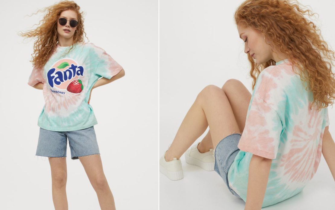 El estilo vintage está más vivo que nunca y, en H&M, lo podemos encontrar a través de diversas prendas. Un claro ejemplo lo tenemos en esta camiseta oversize, de la marca Fanta, que cuenta con colores que nos trasladan a épocas pasadas.