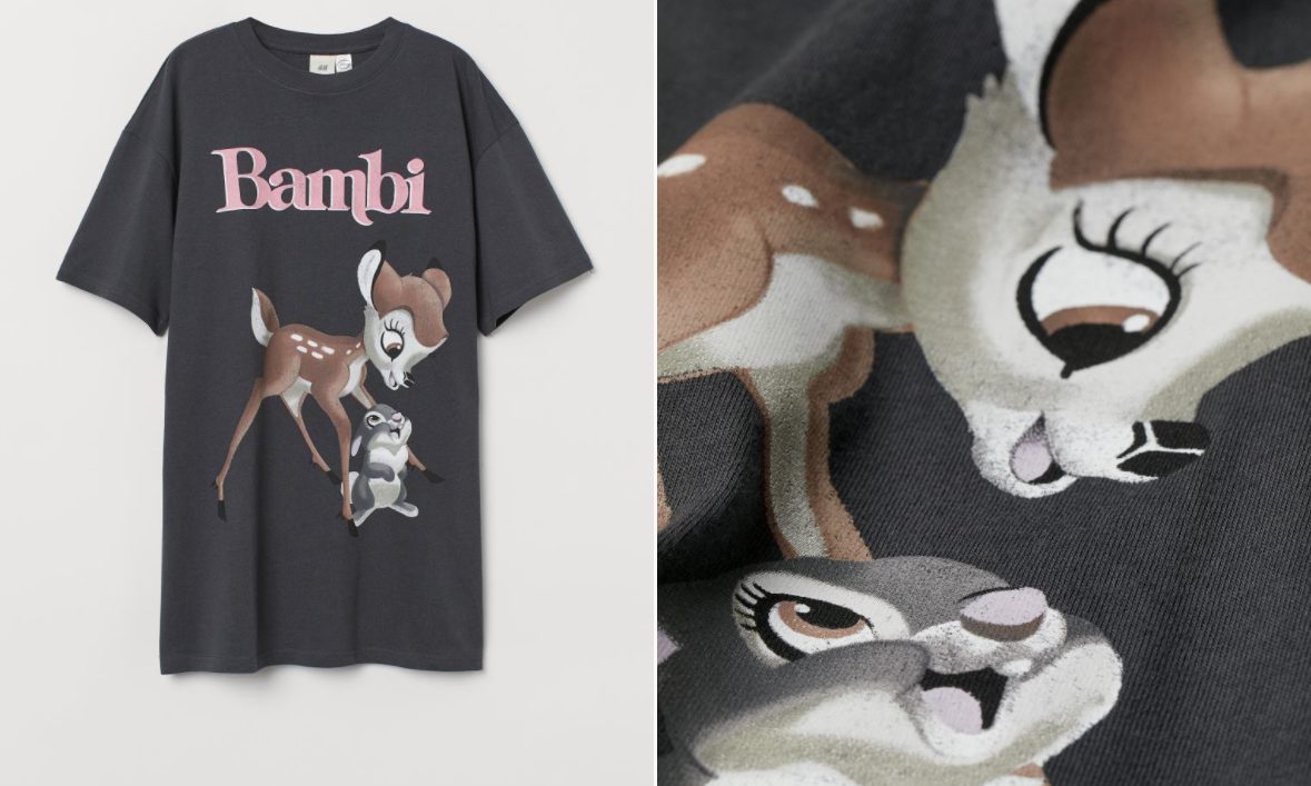 Esta, en concreto, cuenta con corte oversize, lo que la convierte en una de las opciones más cómodas, y un bonito estampado con Bambi y Tambor, dos de los personajes más reconocidos.