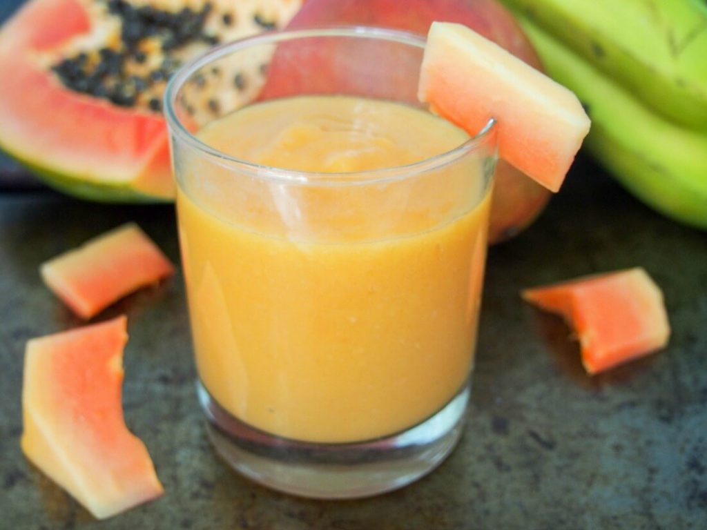 Las frutas tropicales son ricas en fructosa y muy energéticas. Por eso este batido es perfecto para después de hacer deporte o para comenzar el día cuando prevemos que va a ser largo e intenso. Además está delicioso.