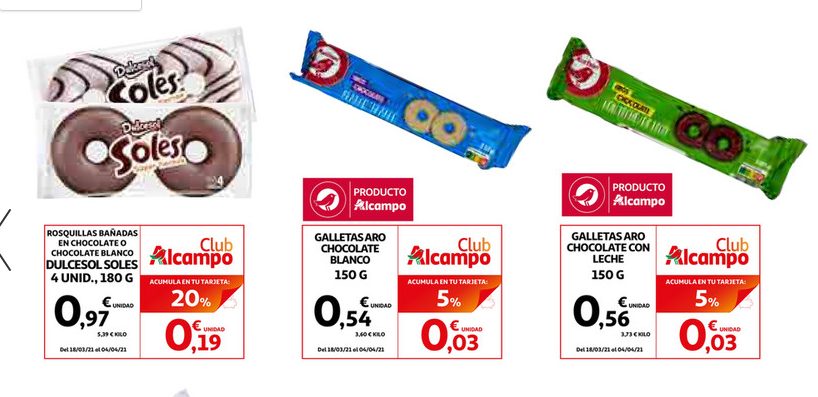 Es el momento de ponernos golosos. Y en Alcampo es el mejor lugar para hacerlo. Aquí puedes conseguir rosquillas bañadas en chocolate de la marca Dulcesol en cuatro unidades por 0,97 euros. El ahorro para tu tarjeta es de 0,19 euros, con un descuento del 20%. Un alimento de lo más rico y que es ideal para las meriendas. Si no quieres comprarlas, puedes hacerlas en casa con esta receta de rosquillas de Semana Santa.