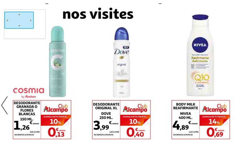 No todo va a ser ofertas locas de alimentos, durante este mes de abril puedes encontrar en Alcampo muy buenos descuentos en desodorantes. Por ejemplo, el famoso XL de Dove, en un formato que te va a durar unos cuantos meses. Su precio es de 3,99 euros y viene con un descuento del 10%.