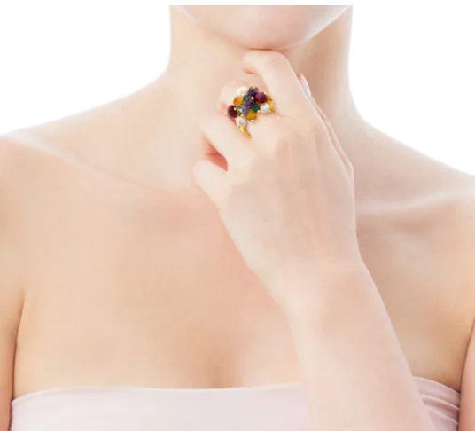 Se trata de un anillo TOUS Elise de plata vermeil con amatista, crisoprasa, rubí, apatito, cornalina, tanzanita y perlas. Plata de primera ley recubierta de oro de 18kt con un espesor de 3 a 5 micras y sin ningún otro metal entre ambos. Y lo mejor de todo es su precio porque solo cuesta 59 euros. O lo que es lo mismo un descuento del 68%, porque su precio habitual es de 185 euros. Nunca pensaste tener esta joya a un precio tan bajo.