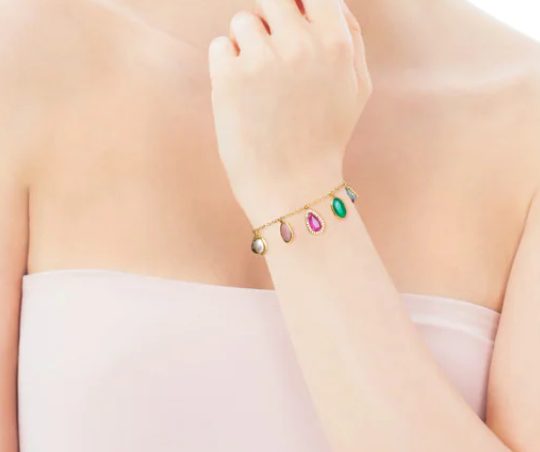 Si entramos en detalles se trata de una pulsera Gem Power de oro amarillo de 18kt con cuarzo, perla, ópalo rosa, rubí con diamantes, ágata verde, topacio azul y amatista. Tiene un peso total de 0,31ct, con motivos: 0,9-1,3 cm y de largo: 17,5 cm. Y si te has quedado con gana de más, aquí tienes más elementos baratos de esta marca.