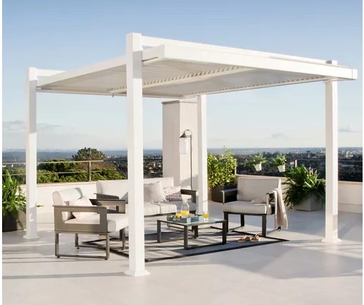 Si tenemos un jardín o terraza grande hay que pensar en hacer una buena inversión. No podemos tener un buen producto y no saber aprovecharlo. Por eso hay que apostar por una pérgola con una estructura de aluminio, y una cubierta de poliéster con un acabado de color blanco. Su precio es de 1.500 euros.