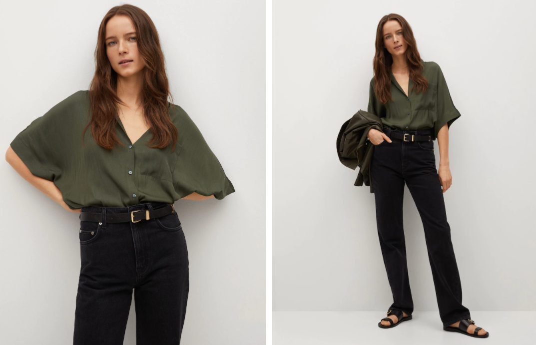 Llama la atención, sobre todo, su manga de corte murciélago, favorecedora y atrevida. Otra de las cosas que más nos gustan es su color verde militar. No obstante, también la podemos encontrar en otros tonos como azul o coral, ideal para verano.