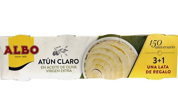 6Pack de cuatro latas de atún claro en aceite de oliva Albo