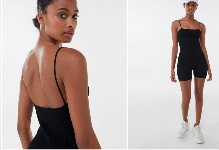 Primavera es sinónimo de salir a la calle, pasear y hacer deporte. Pues bien, este modelo de mono de Bershka es ideal para salir a andar, para jugar al pádel o al tenis o simplemente para pasear por el campo de la manera más cómoda y fresca. Un mono con tirantes que puedes encontrar en color negro y verde. El precio es de 17,99 euros.