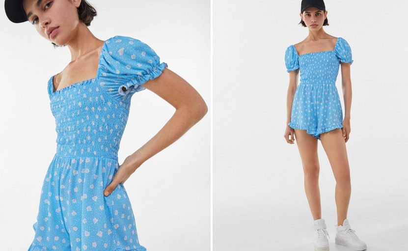 En este caso se juega con la doble utilidad, ya que es parece un mono corto en la parte de abajo, pero según vas subiendo se asemeja a un vestido de lo más primaveral. En este caso con un estampado floral, que acompaña a las hombreras y a un escote de palabra de honor muy elegante. ¿Su precio? Pues lo puedes tener en este y en color negro por solo 17,99 euros.