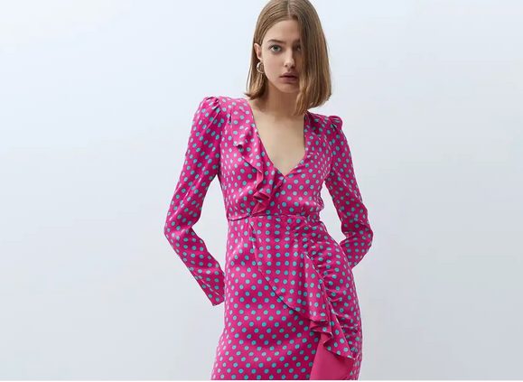 La primavera es el momento perfecto para lucir colores, lunares y volantes. Así que lo mejor es comprarte este vestido rosa flamenco. Han sido muchos meses de no poder disfrutar de estas fiestas, y esta prenda de Sfera es muy top. Llamarás la atención y te llenarás de buena energía cada vez que lo vistas.
